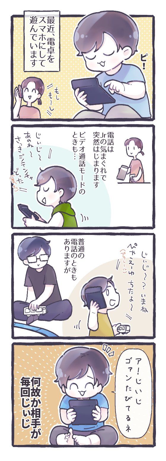 最近は電卓をスマートフォンの代わりにして遊んでいる息子くん。いざ電話のまねごとが始まると電卓に向かって楽しそうに話しかけるのですが、その電話相手というのが…?