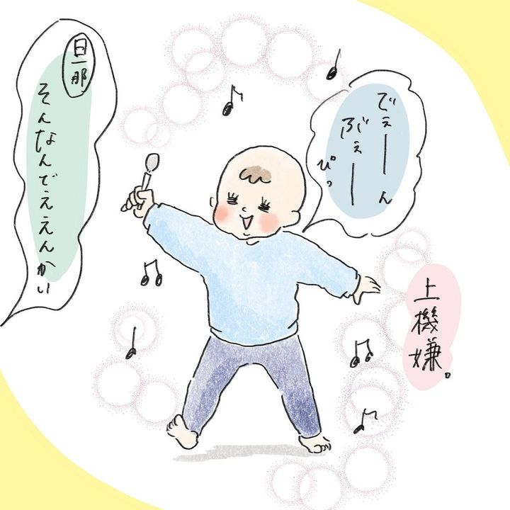 「仕方ないなぁ」とnaoさんがスプーンを見せると、顔つきが変わり、スプーンを手にすると上機嫌で踊りだす息子さんでした。