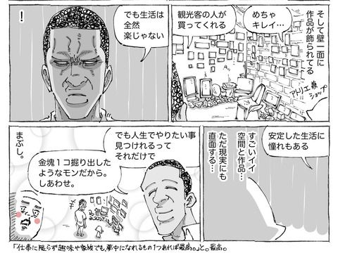 男性いわく「生活は全然楽じゃない」とのこと。複雑な思いを抱く五箇野人さんでしたが、男性は「人生でやりたい事見つけれるってそれだけで金塊1コ掘り出したようなモンだから」と笑顔で話しています。同じ絵描き同士、国を越えて共感するものがあったのではないでしょうか。