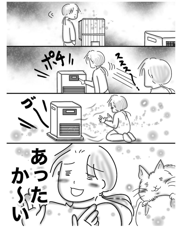 「あったか〜い」と至福の表情をあふれさせるオムニウッチーさん。長い戦いのあとだからこそ、その喜びもひとしおだったのかもしれません。本州以南の地域でも、“クーラーをいつからつけるのか問題”に置き換えると、この喜びがさらに伝わるかもしれませんね!