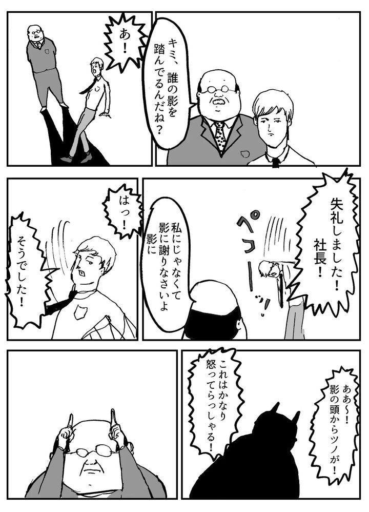 2. 社長「キミ、誰の影を踏んでるんだね?」→深々と謝る男性社員を襲う“予想外の敵”とは