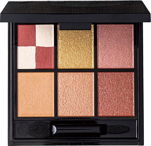 彩度の高い赤みブラウン系が揃った、モードな目元に彩る6色パレット。