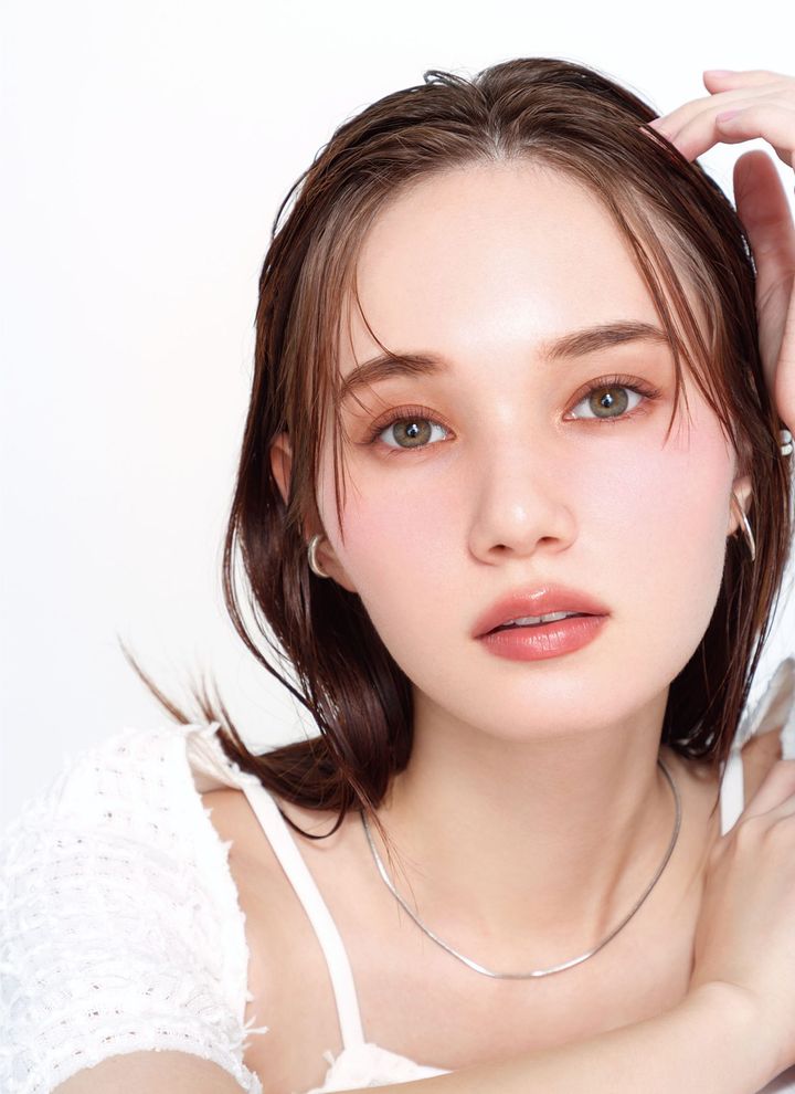 リップは元の唇よりオーバーめに塗り、指でぼかして輪郭をあいまいに。