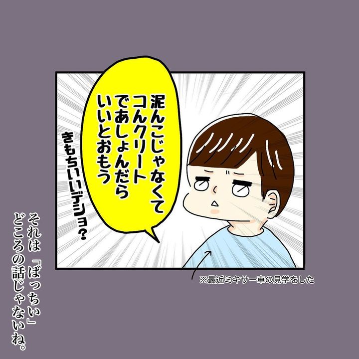 ゆーくん本人に泥んこ遊びは楽しいか聞いてみると、楽しいけれど汚れるのは嫌という返事が。ゆーくんはそれに続けて、泥んこではなくコンクリートで遊んだらいいと思う、と提案します。遊ぶのが楽しいという気持ちも、汚れてしまうのは嫌だという気持ちも、どちらも大事な本音のようです。