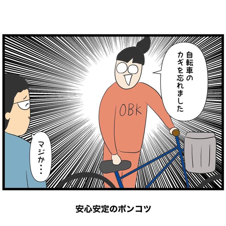 同行した父が一緒に駐輪場に向かい、こめ美ちゃんは無事に清算できたのですが…。なんと、こめ美ちゃんは肝心の自転車の鍵を忘れてしまったのでした。ノンノさんのコメントによれば、この後、父が後輪を持ち上げて持って帰ってきたそうです。