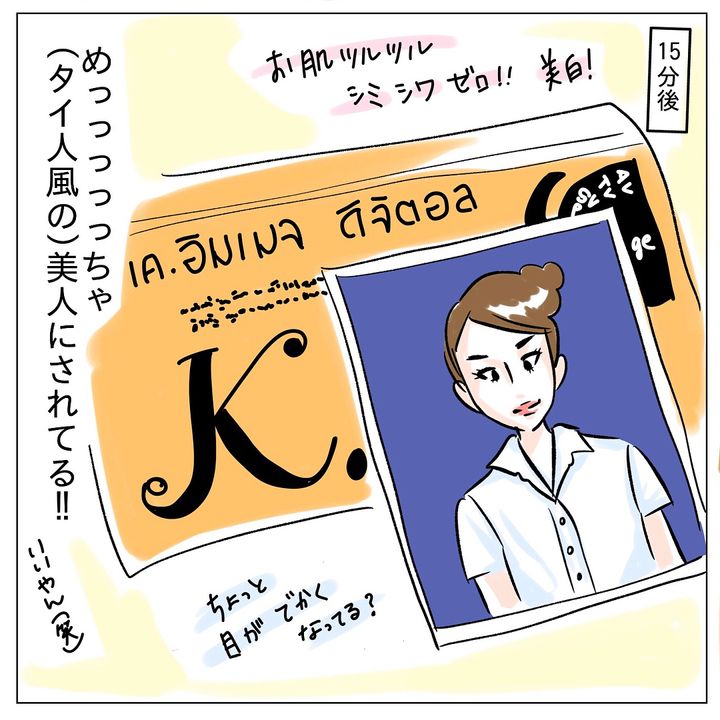 しかし、出来上がりの写真がタイ人風の美人に加工されており、「いいやん」と思わず嬉しくなるのでした。