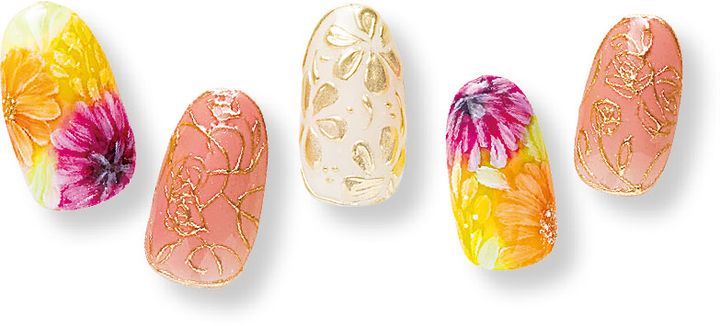 花々が咲き誇る和風モダンな晴れの日ネイル