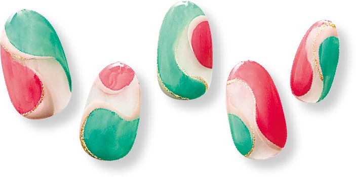 ゴールドのラインで高級感もプラスして、大人の女性にも合うポップなネイルに。(担当/濱邉あさみさん)