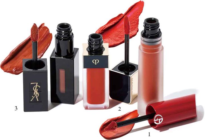 血色カラーにベージュニュアンスを潜ませ、華やかさと肌なじみの良さを両立。
