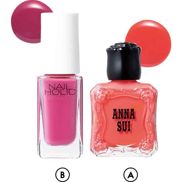 その他の指は、SHIRO&ネイルホリックのビビッドカラーを爪先にちょんと置く。