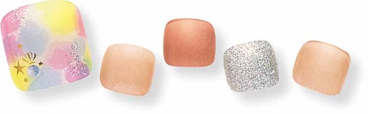 ゆめかわ色と大人ベージュのバランスが絶妙ふんわりと溶け合うアイシーカラーで、クール感を演出。凝ったアートが簡単にできる。プレスオンジェルフット GNST12J 27ピース入り¥ 1,320