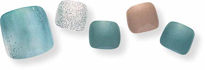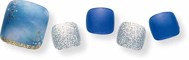 柔らかカラーの組み合わせで癒し感を透明感のある癒しのブルーで軽やかな足元にチェンジ。同 GNST06J 27ピース入り¥1,320