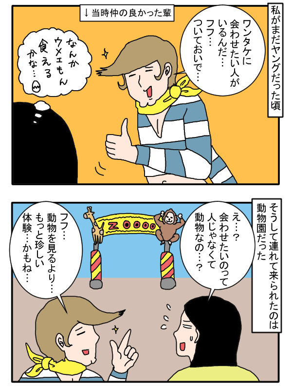 ワンタケさんが若かった頃、友人から「会わせたい人がいるんだ…」と言われ、動物園に連れて行かれたそうで…?