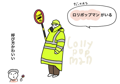 その人物が持っている「STOP」と書かれた棒付きの交通安全の札が、キャンディのロリポップのように見えるからなのでしょうか。国は違えど、目立つ棒を持って子どもたちを守る文化は同じなのですね。世界のいろいろな国の「緑のおじさん・おばさん」のことも知りたくなるエピソードでした!