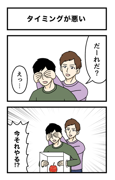 「だーれだ?」後ろから目隠しクイズをされた男性→意味不明な“タイミング”に「今それやる!?」【漫画】