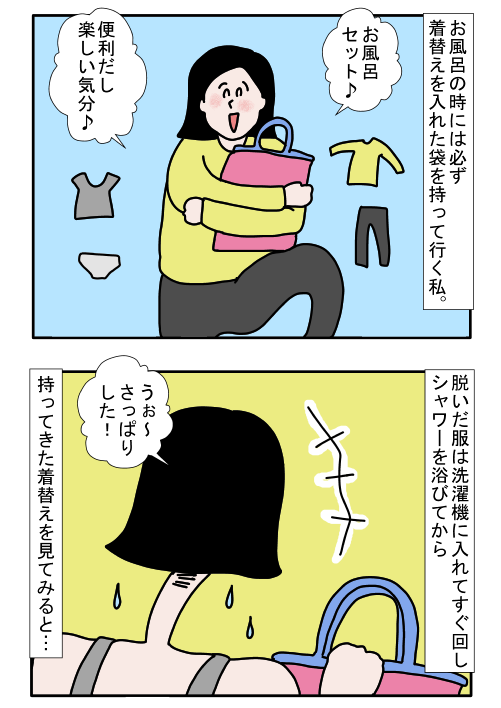 ワンタケさんは、お風呂に入る時にいつも着替え一式を袋に入れて持っていくそうなのですが…?