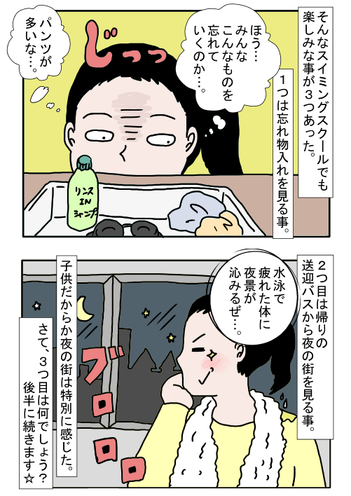 厳しくて有名なスイミングスクールで、ワンタケさんは体格が大きかった為、人より多めにスパルタを受けていたそうです。しかし、楽しみな事があったそうで、1つ目は忘れ物を見る事。そして、2つ目は帰りの送迎バスから夜の街を見る事で、3つ目は帰りに飲む“自動販売機の飲み物”だったそうです。