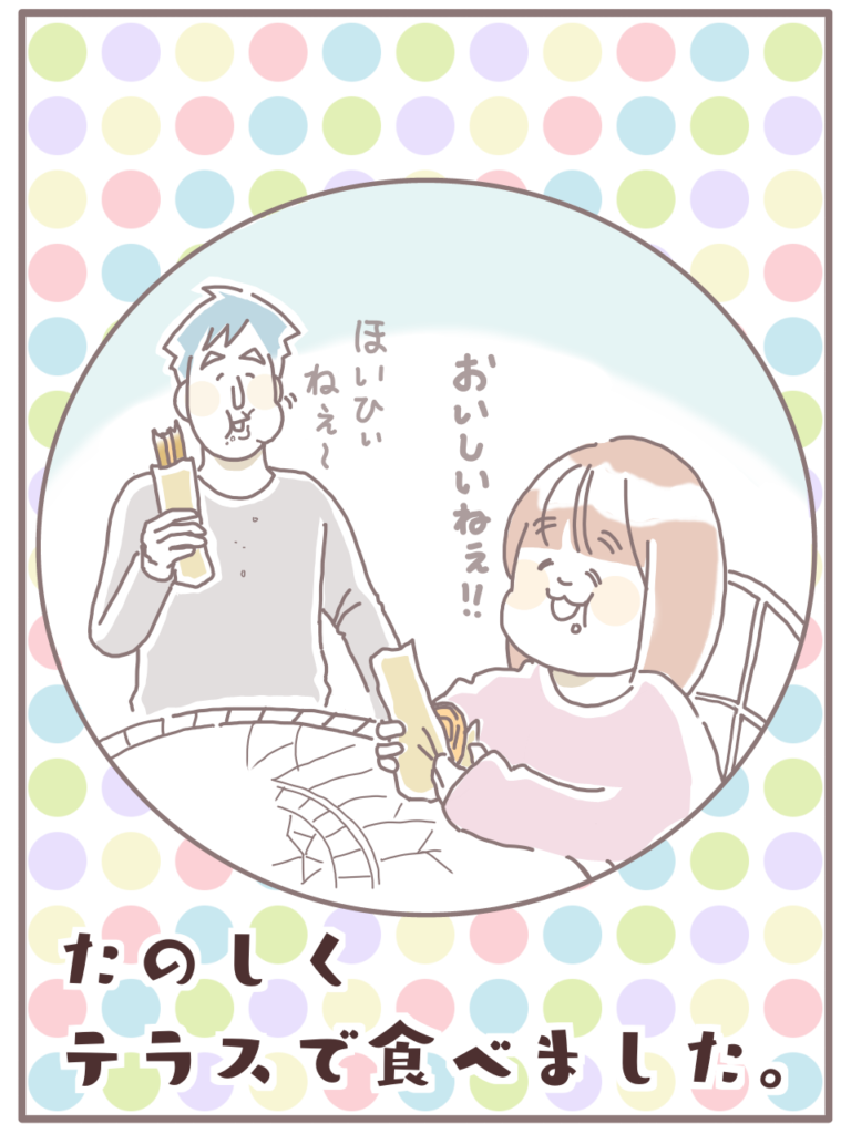 どうしてもテラス席で食べたかった、パパの強い想いを尊重してあげる2人のやさしさと、3人で楽しそうにパンを食べるきさらぎさん一家の様子に、心が温まりました!