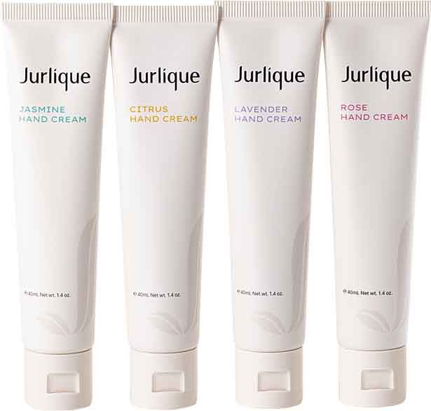 <セット内容>右から:ローズ ハンドクリーム N、ラベンダー ハンドクリーム N、シトラス ハンドクリーム N、ジャスミン ハンドクリーム N 各40ml