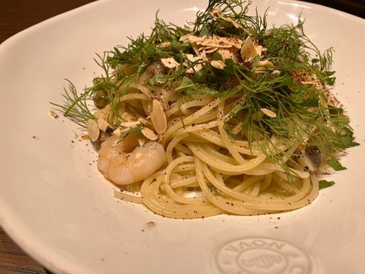 ディルがこんなにたっぷりのっているのは初めて!カリッとしたアーモンドスライスがいいアクセント。普通のイタリアンにはないお味でした。