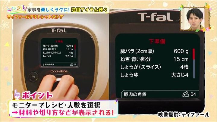 モニターで、レシピ、人数を選択!