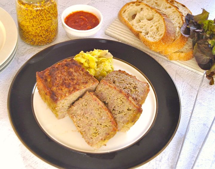 ミートローフは焼きたては崩れやすいので、粗熱が取れたら切ってください。パン、レタス、マヨネーズも用意してサンドイッチにしても美味しいですよ。
