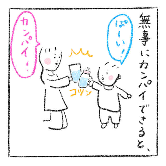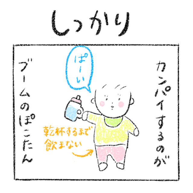 1歳の女の子ぽこたんのママであるまもぺさんから、乾杯のお話です。最近、乾杯ブームだというぽこたん、どうやらお手本にしている人がいるようですよ・・・?