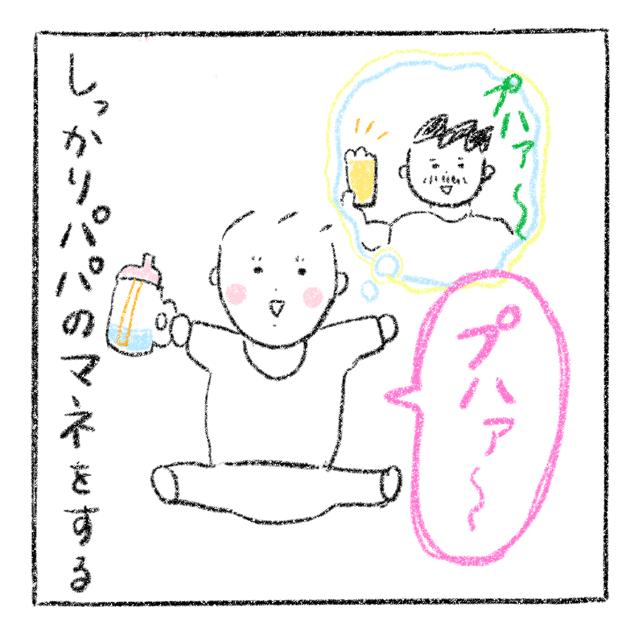 かんぱーい!からの・・プハァ~!よく見てるな・・パパを完コピする1歳娘|まもぺの育児漫画
