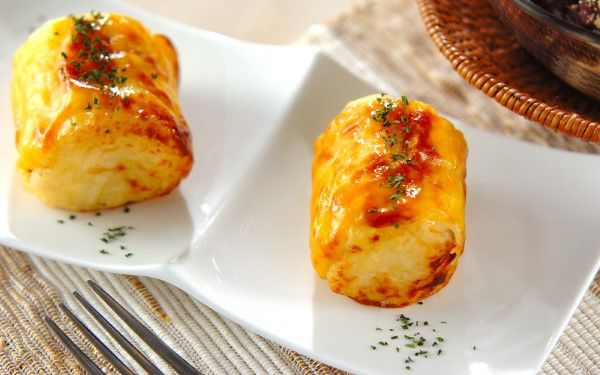 マッシュポテトを俵状に成形してオーブンでこんがり焼けば、おしゃれな一品に。表面に卵黄を塗ると、ツヤ良く仕上がります。香ばしくてホクッとした食感がたまりません。お子様も喜びそうですね。出来立てはもちろん、冷めても美味しいですよ。