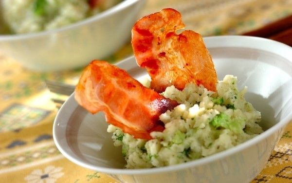 マッシュポテトに刻んだブロッコリーを加えれば、彩りも栄養価もUP! バジルペーストで風味豊かに仕上げましょう。最後にカリカリベーコンを飾るアイディアはパーティ受けしそうですね。ブロッコリーの茹で加減で食感が変わるので、お好みで調整してください。