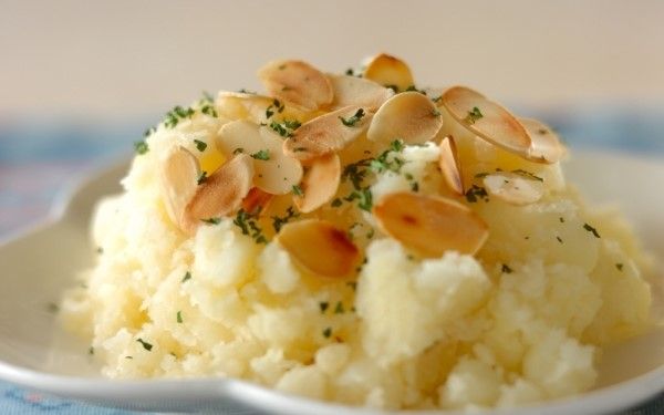 マッシュポテトに粉チーズを加えて、コク旨な仕上がりに。アクセントとして、香ばしく煎ったアーモンドのトッピングするとワンランクUPします。ほかにフライドオニオンやニンニクチップなどもおすすめです。