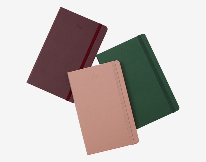 世界中で愛されるイタリアのライフスタイルブランド〈モレスキン〉の手帳。ウィークリーダイアリーは、左ページに週の予定、右にはメモやアイデアを書き込むことができ、用途の広さが人気の秘密。定番の黒もいいけれど、限定カラーも見逃せない。2024年版はマートルグリーン、バーガンディレッド、サンディーブラウンの3色を展開。