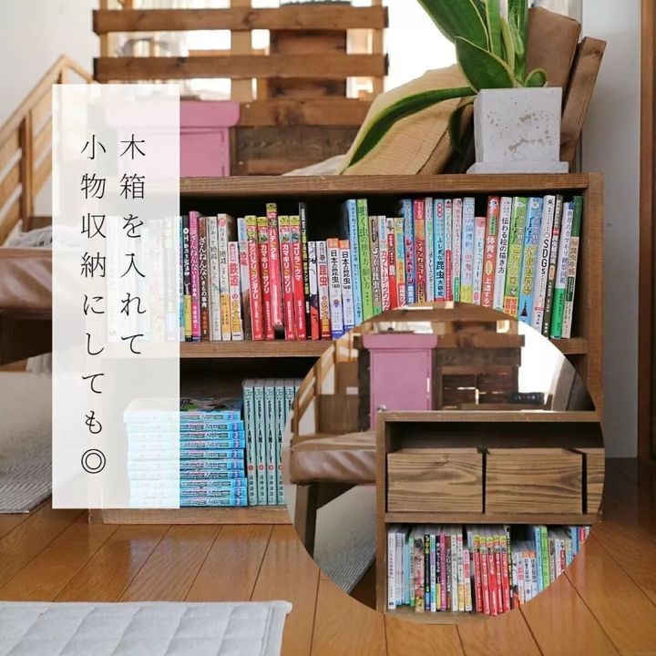 今回は散らかった本が片付く、横に長い本棚の作り方をご紹介しました。本以外にも収納ボックスを使えば、小物の収納に使える収納棚に変身しますよ。