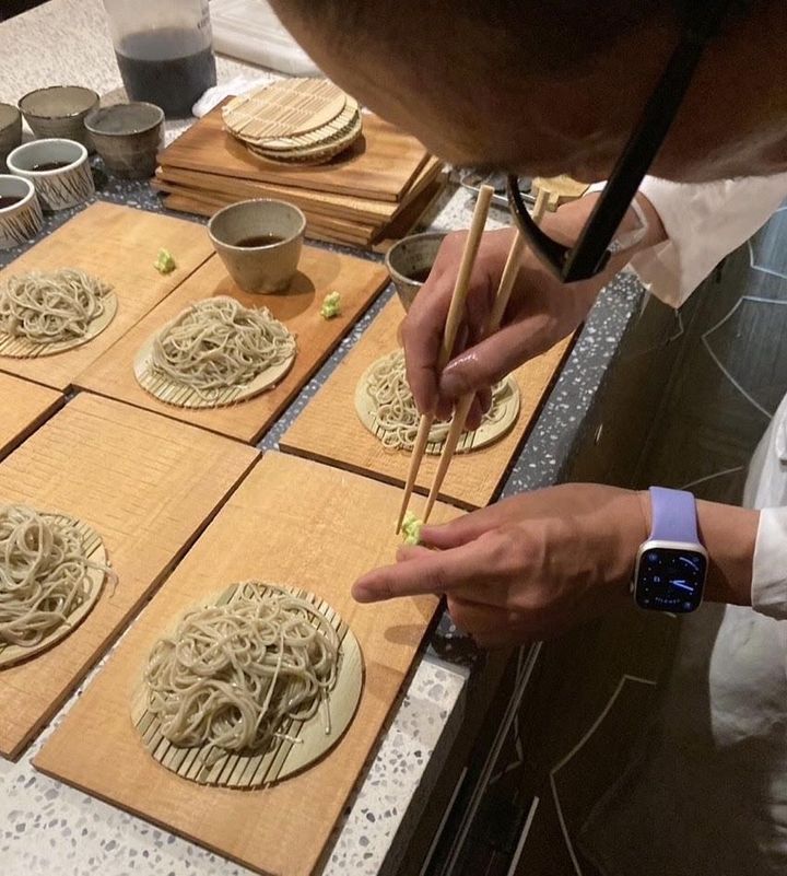 前菜からお造り、てんぷら、せいろ蕎麦に巻き寿司、甘味まで、全8~10品を少しづついただける蕎麦会席(1人¥8,000~、出張費¥20,000/税無し)は海外ゲストからの指名も多く、毎回お世話になっています。