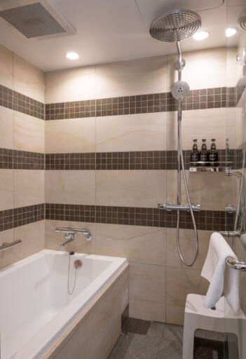 バスタブのある客室は、デラックスツインルームとユニバーサルルームのみ。お風呂に浸かりたい方はこちらの客室がおすすめです。全ての客室はハンドシャワーのほかにレインシャワーを備えます。