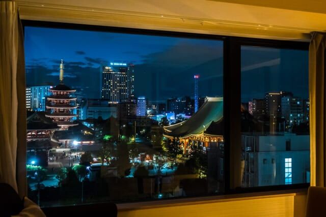 ▲客室から見える浅草寺のライトアップも見事です