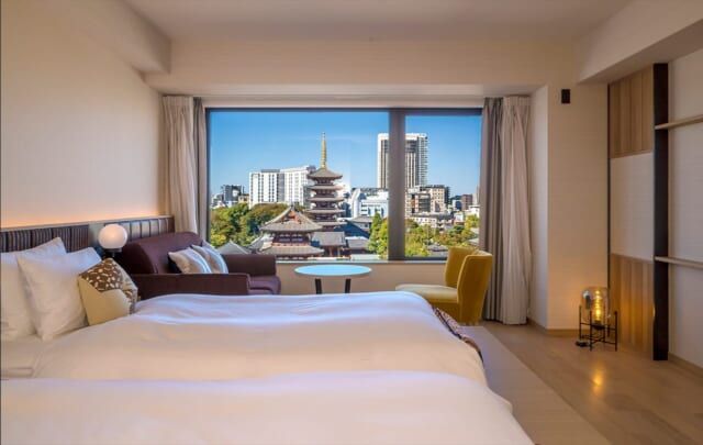 浅草寺ビューの客室「デラックスツインルーム」も用意