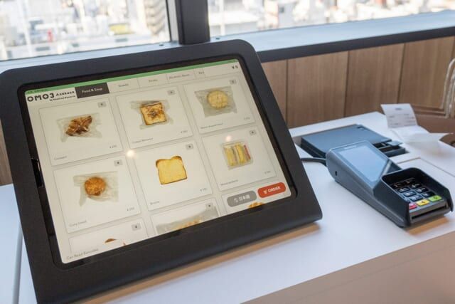 商品を選んだら備え付けのタブレットで清算。支払い方法はクレジットカードやQRコード決済のほか、OMO3浅草専用のFood & Drink Stationチケットを用意。チケット付き宿泊プランも選べます。