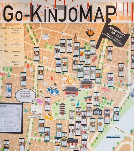OMOベースにあるご近所マップではおすすめの飲食店を紹介。スタッフが自ら足を運んで見つけた、ガイドブックにも乗っていないディープなお店も掲載。隠れた名店が多い観音裏(裏浅草)エリアなど、浅草っ子おすすめ情報も見つかります。