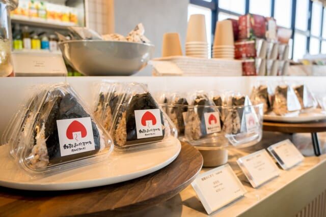 浅草駅に併設する百貨店松屋浅草にお店がある雑穀おにぎり専門店「mai mai」からは、銀聖鮭とチーズ塩昆布、しじみ佃煮の3種類、毎朝握りたてが届きます。おにぎりを食べているゲストも多く、チーズ塩昆布は女性に人気です。