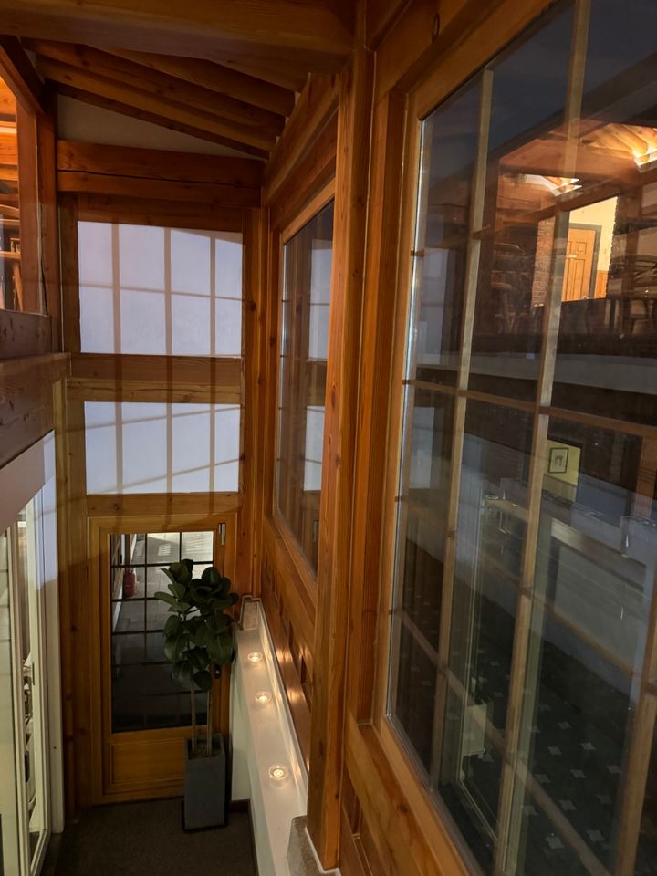 木の温もりたっぷりの韓屋をリノベーションした、落ち着く店内。1階がキッチン、ダイニングは天高の2階フロアに。