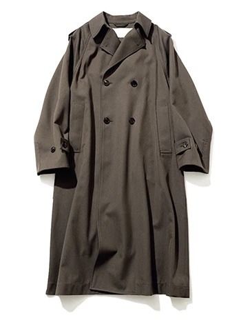 「はくボトムは基本固定。ベーシックな中に少し新鮮味のあるトップスを合わせて、シンプルだけどちょっとクセのあるスタイルが好き、といこともあり暗めのトーンの服ともなじみのいい、グレーに近いカーキカラーのトレンチを購入。身幅も広めで中に厚手のニットなどを着ても、もたつきません」(スタイリスト・船戸唯さん)