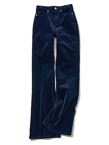 「ボトムは年中デニムなので、デニムに似たボトムを新投入。脚をまっすぐに見せてくれる細うね×細身の形。わずかに広がるブーツカット風シルエットで、脚長効果抜群。素材のぬくもりが生きる濃紺なので、黒よりやさしく引き締められます」(高木さん)