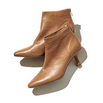 「毎シーズンスタイリングにすぐとり入れられる、用途が広い服やシューズから買いそろえます。秋冬はとくにベージュ小物がスタイリングの格上げに重宝する時期。細長い形、低めのヒール、キャメルに近い色味。履き回しにも優れたこのブーツは今シーズンの足元の主役」(渡邉さん)