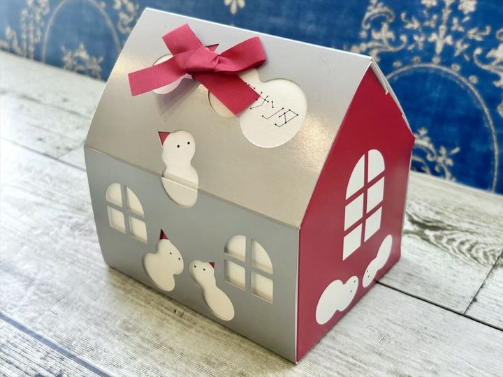 真っ赤なリボンがあしらわれた、おうちの形のパッケージが可愛らしい「白銀サンタ」。こちらは8個入りのものです。