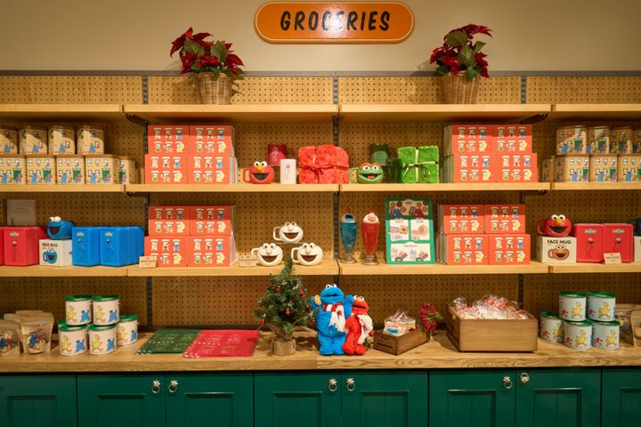 11月30日に東京・池袋のサンシャインシティ 専門店街アルパ1階西入口にオープンしたセサミストリートマーケット。エントランスに一歩足を踏み入れると、まるでセサミストリートの世界に入り込んでしまったような気持ちに浸れる、約100坪の広い店内が広がります。「SESAME STREET」の中で食料品は日用品を販売する“フーパーズ・ストア”というお店が登場するのですが、店内の奥にはフーパーズ・ストアのテーブルセットを再現したフォトスポットがあったり、キャラクターの等身大フィギュアや装飾etc. ファンにはたまらない場所でございます。