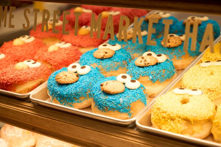 エルモ、クッキーモンスター、ビッグバードのドーナッツ。食べるのを躊躇してしまう可愛さ。