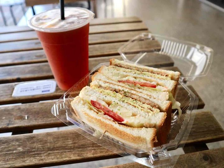 台北の問屋街・迪化街(ディーホアジエ)の入り口近くにある朝食ブランチ店「初作早餐」では、具沢山のトーストサンドを味わうことができます。看板メニューは「初作總匯鳳梨豬排蛋(パイナップルカツエッグ)」。とんかつと自家製ポテトサラダ、カットパイナップル、レタス、トマト、玉子焼きがサンドされた豪華なトーストサンドで、ボリューム満点です。