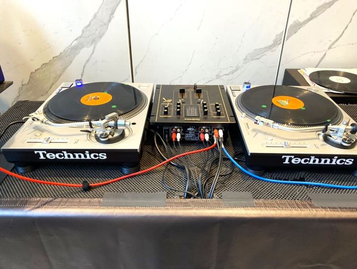 使用されているターンテーブルは、過去50年にわたりディスコやクラブでDJに愛用されてきたSL-1200シリーズの最新モデルSL-1200MK7。