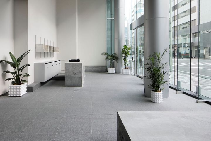 「Technics café KYOTO」では、コーヒーや軽食とともにリラックスしながら上質な音を堪能できます。内装は建築デザイナー・関祐介氏が手掛け、全面ガラス張りにコンクリートを配したミニマルでスタイリッシュな空間。